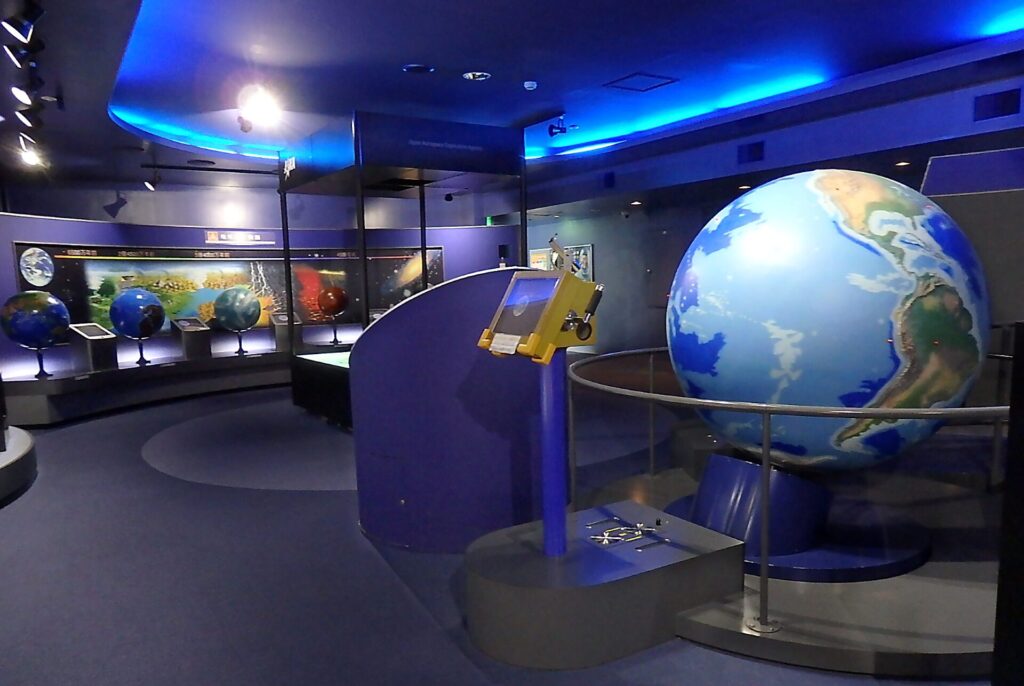 地球観測衛星の模型や衛星から送られてきた地球の画像を見ることができます。